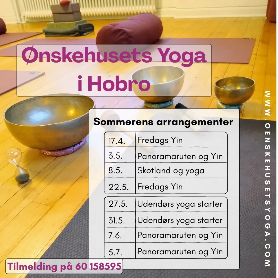 Velkommen til yoga i HobroØNSKEHUSETS YOGANærvær • Atmosfære • Fokus Hold Her undervises nærværende og på små holdi Ashtanga, Hatha og Yin yoga for begyndere og øvede. Nyheder
